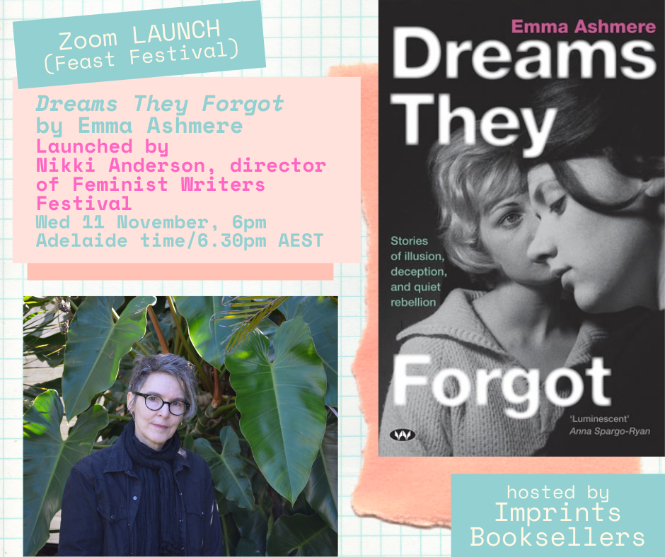 Emma Ashmere’s short story collection DREAMS THEY FORGOT follows her critically acclaimed debut novel THE FLOATING GARDEN, shortlisted for Small Press Network Book of the Year. Short fiction & nonfiction publications include: the Age, Meanjin, Commonwealth Writers magazine adda, Overland, Griffith Review, Short Australian Stories, Review of Australian Fiction, Sleepers Almanac, #8WordStory on three Brisbane city billboards, NGVmagazine. Winner: joanne burns Microlit Award 2024. Short story finalist: Commonwealth Writers Prize, Furphy Literary Award 2024, Carmel Bird Digital Award, Newcastle Short Story Award, Overland NUW Fair Australia Prize, and Age Short Story Competition. Longlisted: Big Issue Fiction Edition and Heroines Prize. Anthologies: Scorchers, Heroines, Meniscus, Glimmer Press FUTURES. Read more on short and long stories here. Living on Bundjalung country in regional New South Wales.